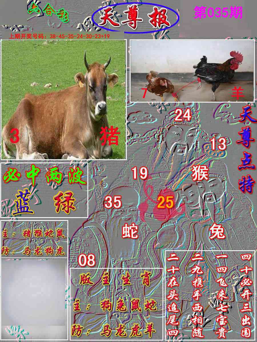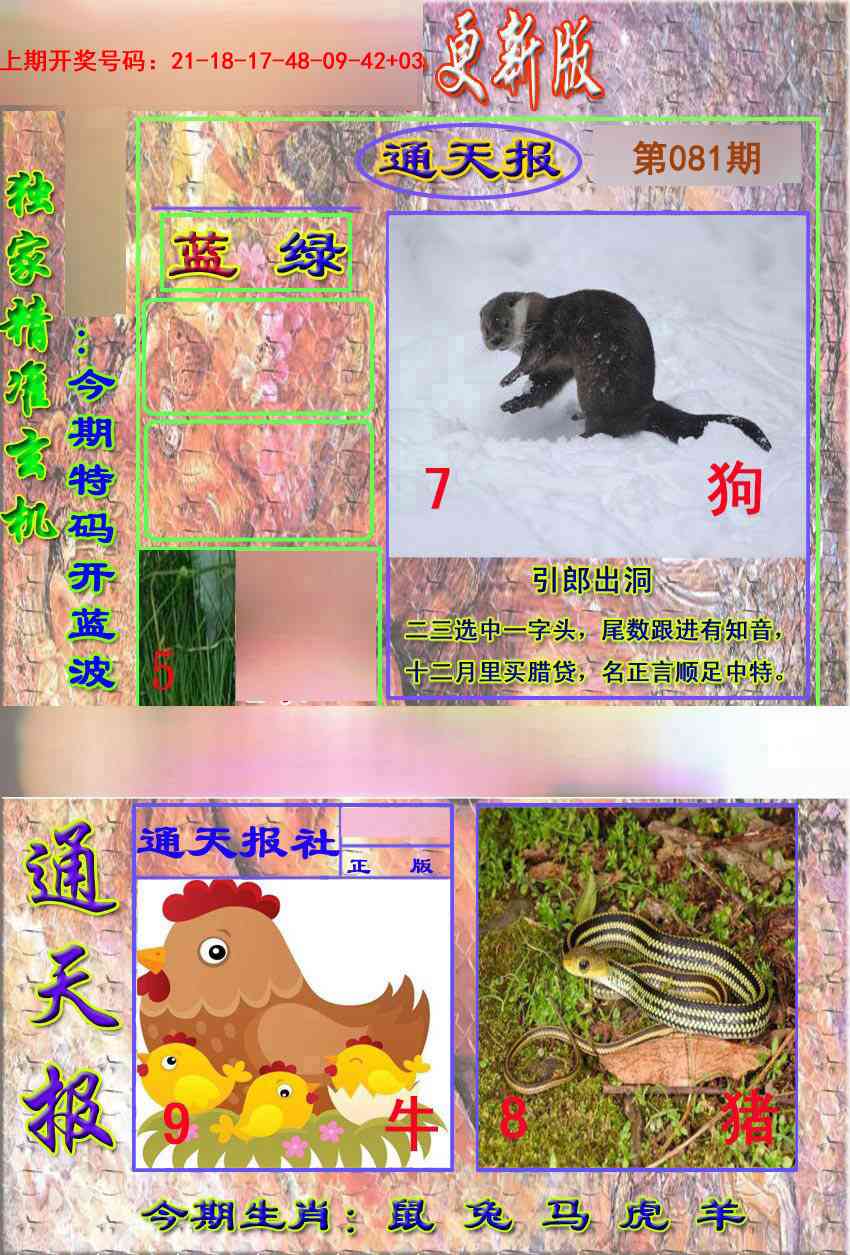 天肖:兔马猴猪牛龙 地肖:蛇羊鸡狗鼠虎
