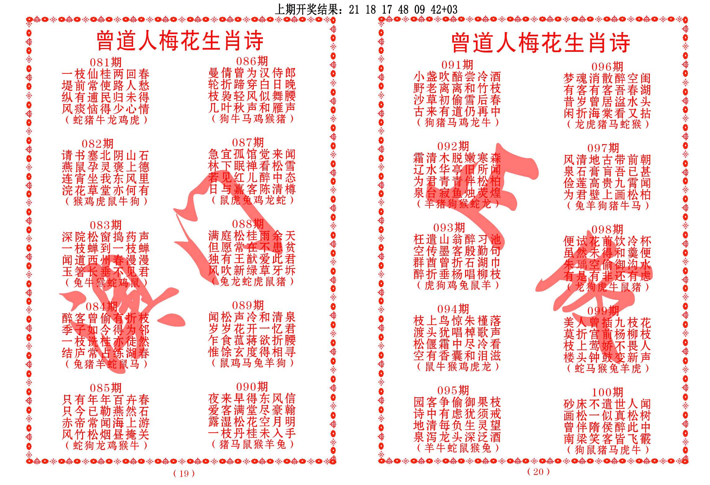 左肖:鼠牛龙蛇猴鸡 右肖:虎兔马羊狗猪