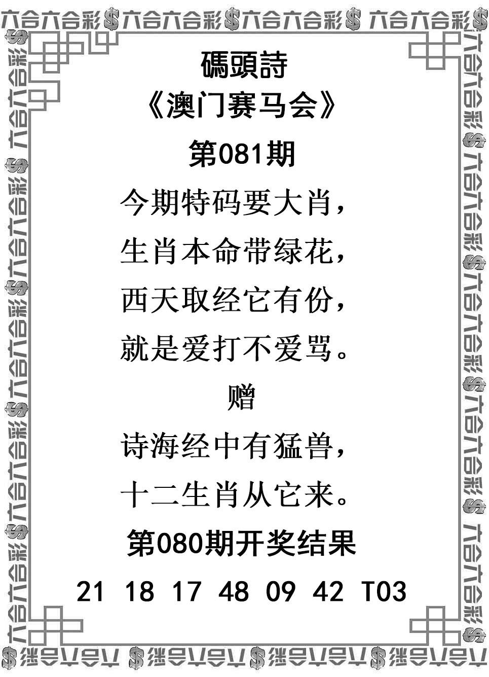 澳利澳六肖18码