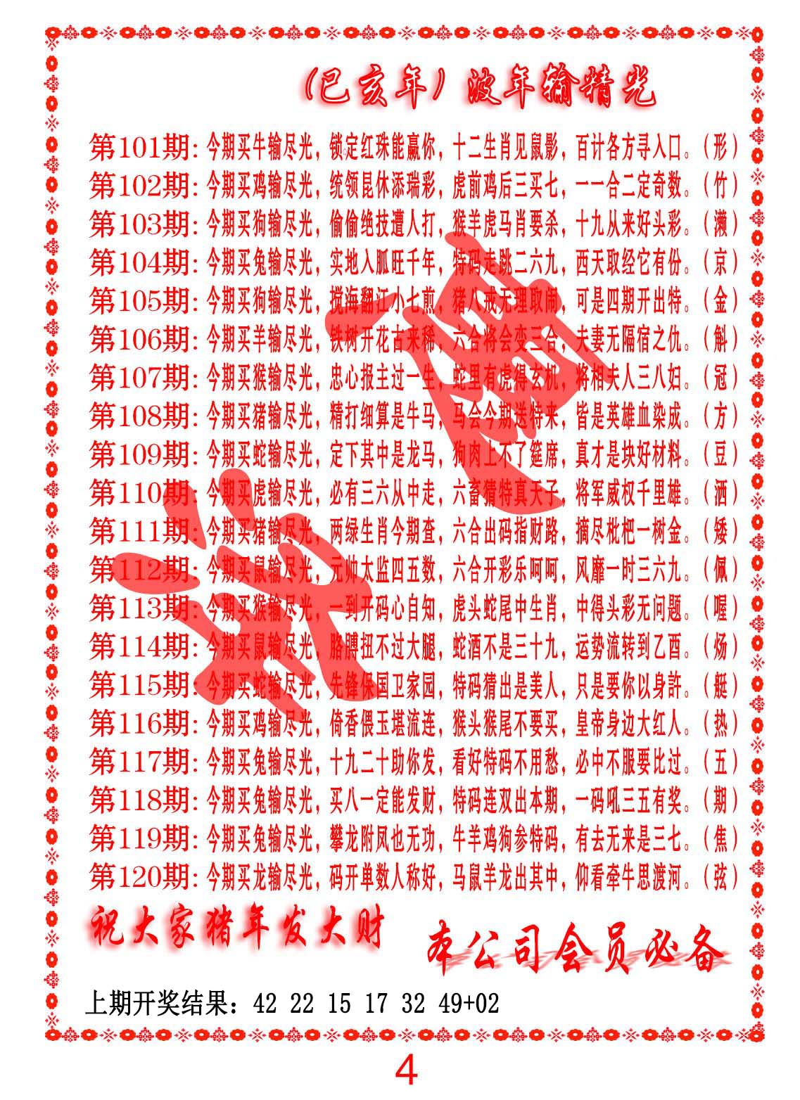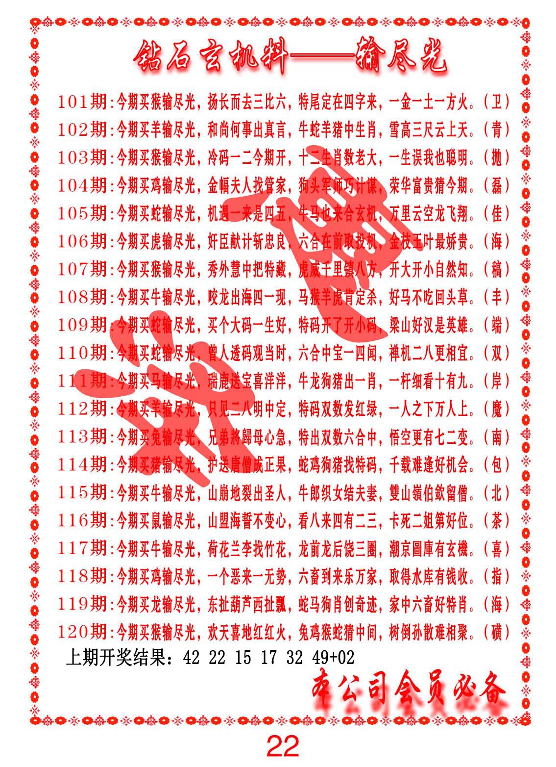 钻石玄机诗-输光料