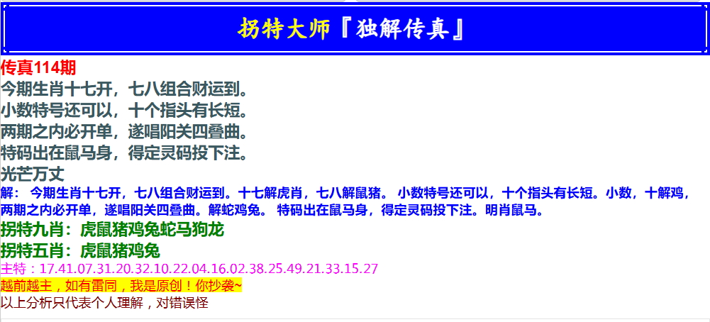 请网民自行判断真伪,谨防网上预测诈骗,本站内容均摘自络。