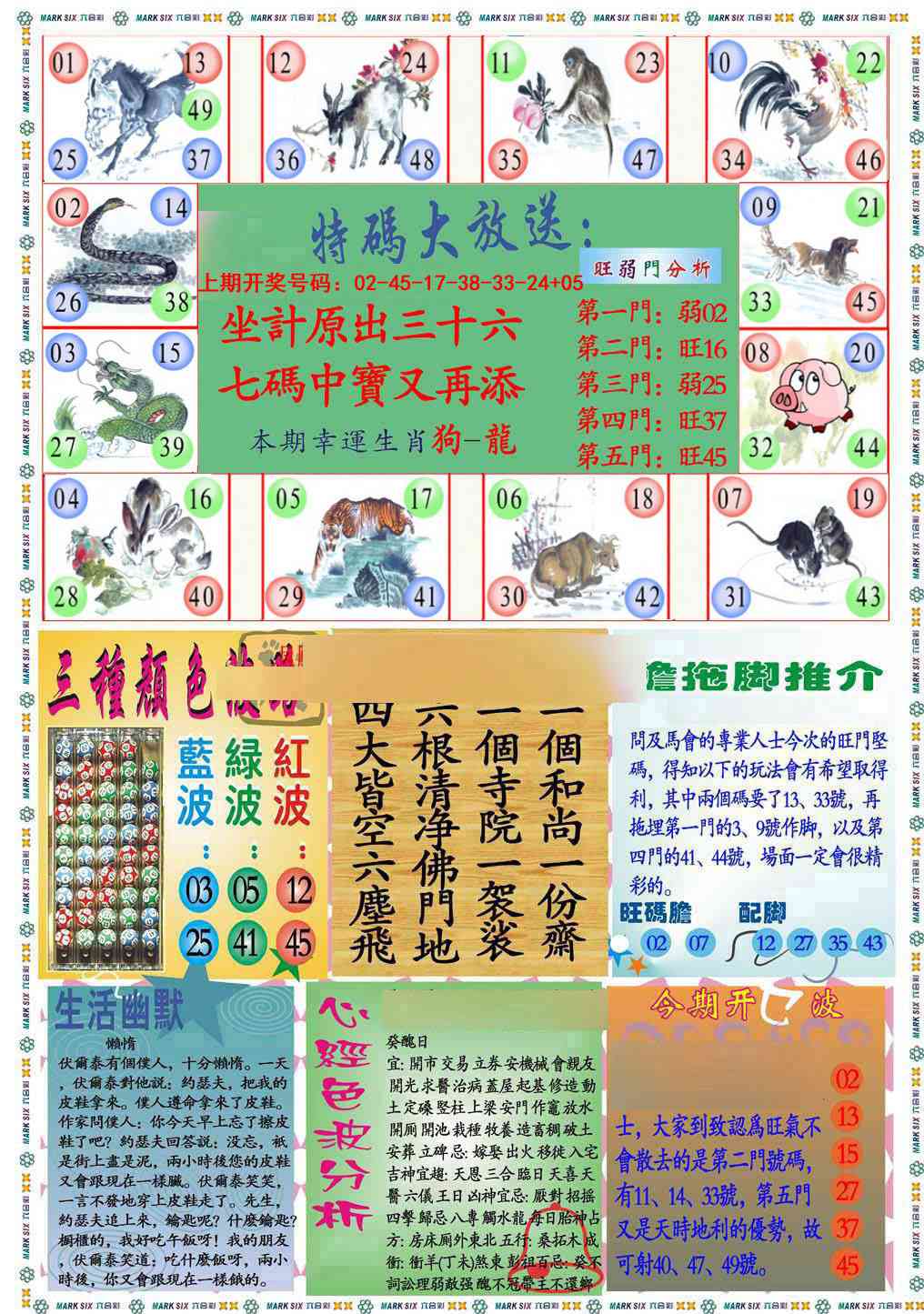 天肖:兔马猴猪牛龙 地肖:蛇羊鸡狗鼠虎